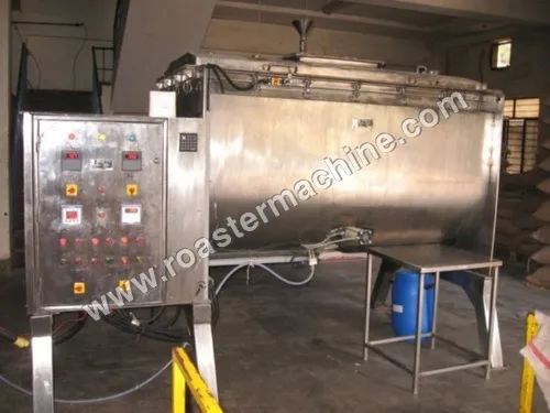 This Sesame Roaster Machine is a multi-purpose machine used for different process applications like roasting, reducing moisture contents, increasing products self life, etc. It is fine for various types of Seeds, Pulses, Granules, Powders, Flours, and Gravy type products etc.By keeping the machine heating system Off, it is utilized for blending and mixing various components. Also by adding a dedicated spraying system, the machine can be utilized for adding small quantity of Concentrates, Powders for adding colours, and Liquids for adding essences, proteins, flavours, etc.